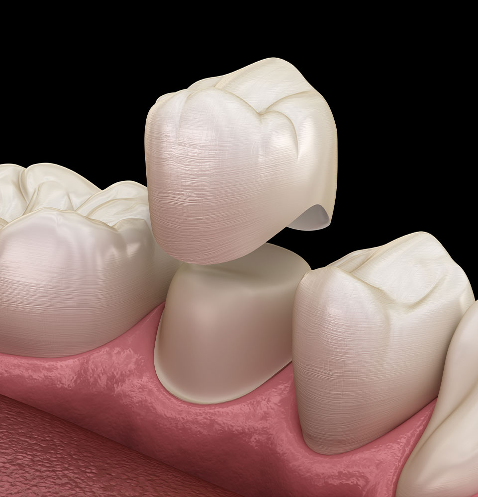 The process starts by trimming and reshaping your tooth to create an ideal base for the crown. Digital impressions of your bite are taken to craft a temporary crown on-site and sent to the dental lab to fabricate your final tooth crown.